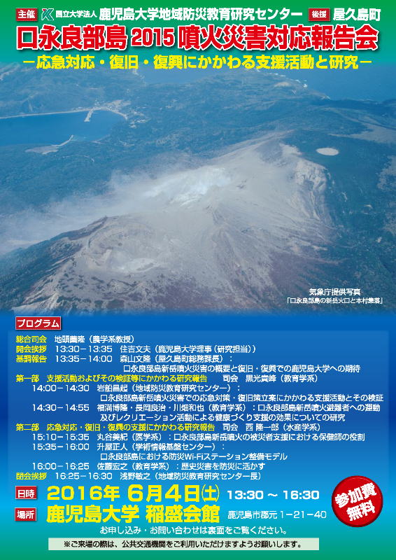 なにが良かったのか?何が悪かったのか?良くするにはどうすれば良かったのか?・・・・を「振り返る」ことは、これから口永良部島の復旧・復興を進める上でも欠くことはできません。このような課題を「官民(町と島民)」で考えることができる機会があればと望んでおります。